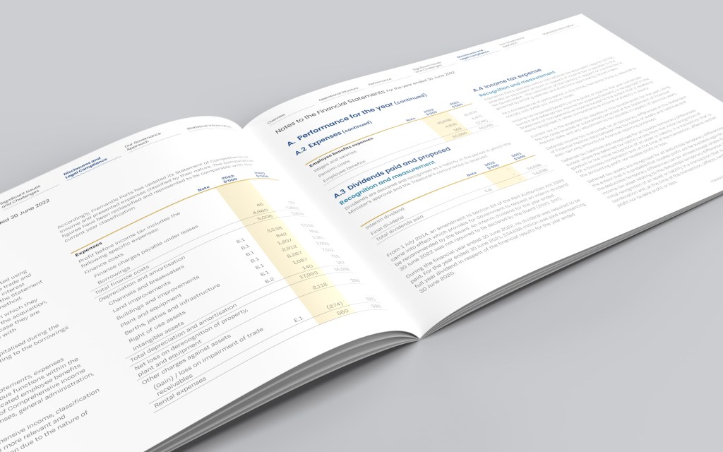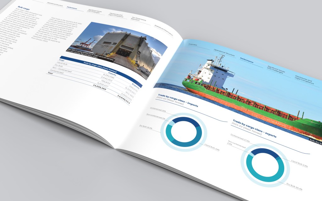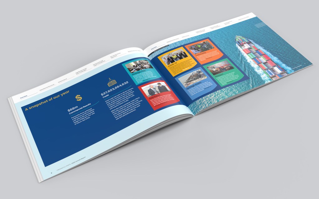 Fremantle Ports is required to deliver detailed annual reports to inform Government, citizens and other interested parties about its financial plans, outcomes and position. I designed a 184 page report, comprising an overview section followed by extensive graphs and a financial report section. The report won the 38th Annual W.S. Lonnie Award for excellence and accountability in annual reporting and the Margaret Nadebaum Trophy for the best annual report in the Government Enterprise Sector.